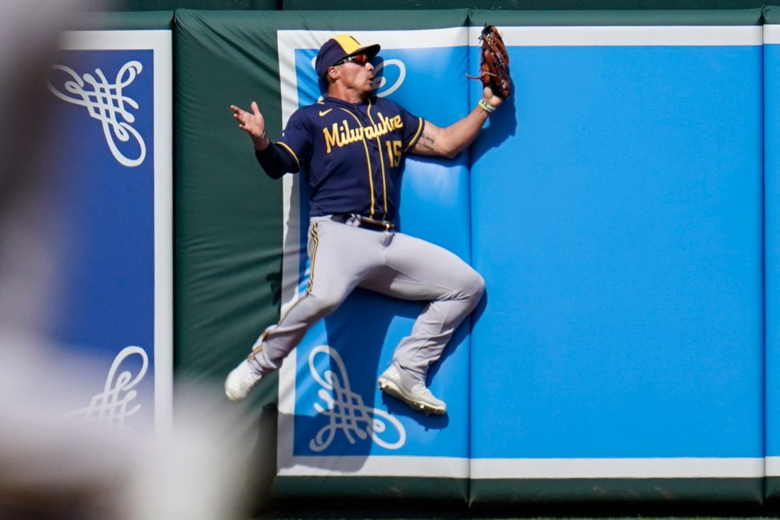 AP photo Milwaukee Brewers center fielder Tyrone Taylor catches a fly ball hit by Milwaukee Brewers’ Kolten Wong at Oriole Park at Camden Yards, Monday, in Baltimore.