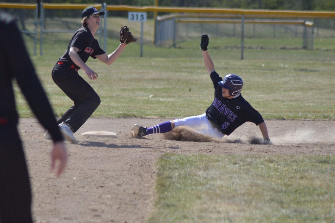 GLADSTONE — A baseball twinbill brought a pair of wins for the Gladstone Braves Wednesday afternoon as they defeated the Marquette Redmen, 11-3, 13-9, in back-to-back games in Gladstone.