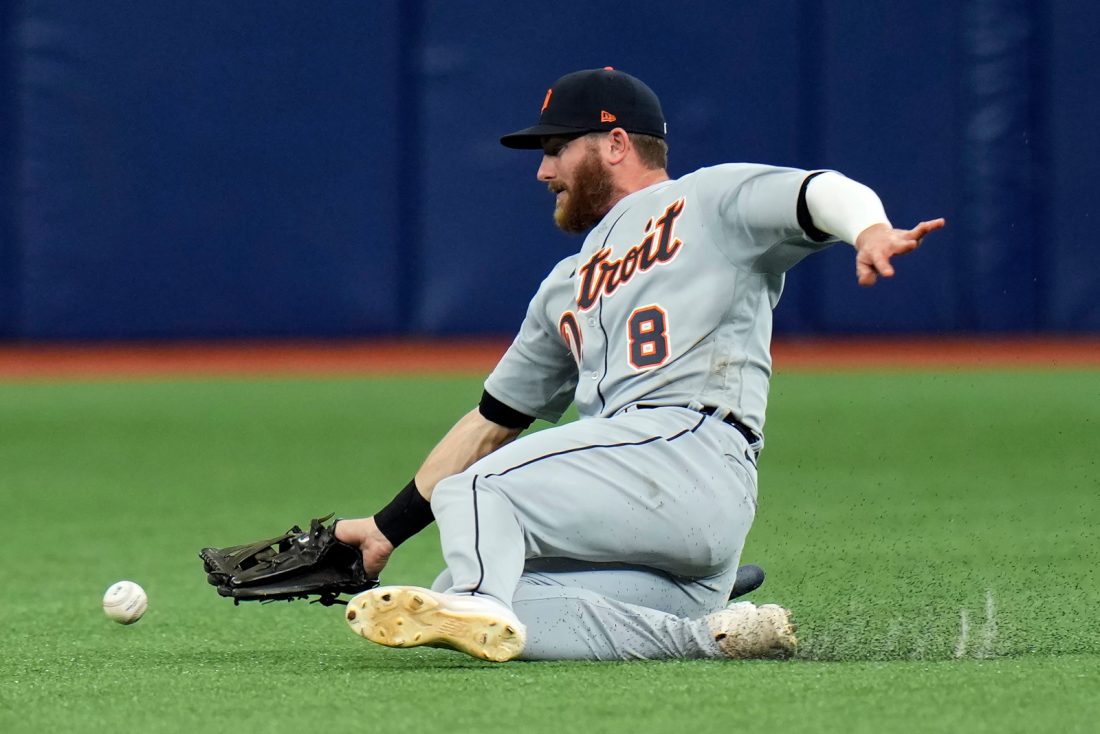 AP photo Detroit Tigers right fielder Robbie Grossman can’t make the catch on an RBI single by Tampa Bay Rays’ Ji-Man Choi Wednesday in St. Petersburg, Fla.