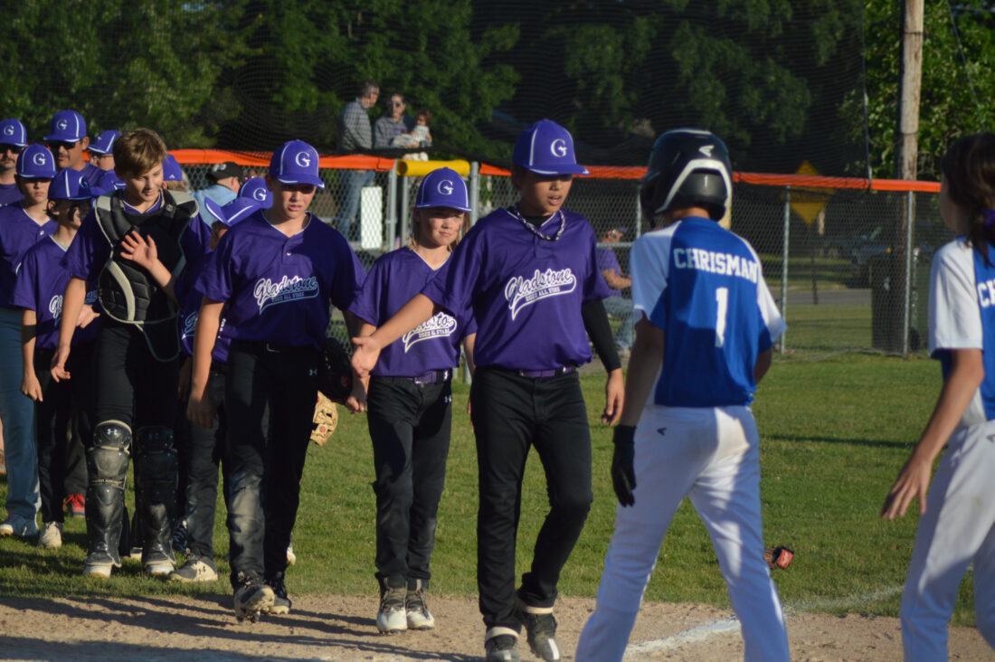 “I’m proud of the boys,” said Gladstone coach Mike Sanville. “We’ve had very short practice. This tournament is so close after the end of little league one week ago. Mixing a bunch of new kids together, so that’s always interesting. … This group, all 12 of them went up there, swung the bat and put the ball in fair play.”