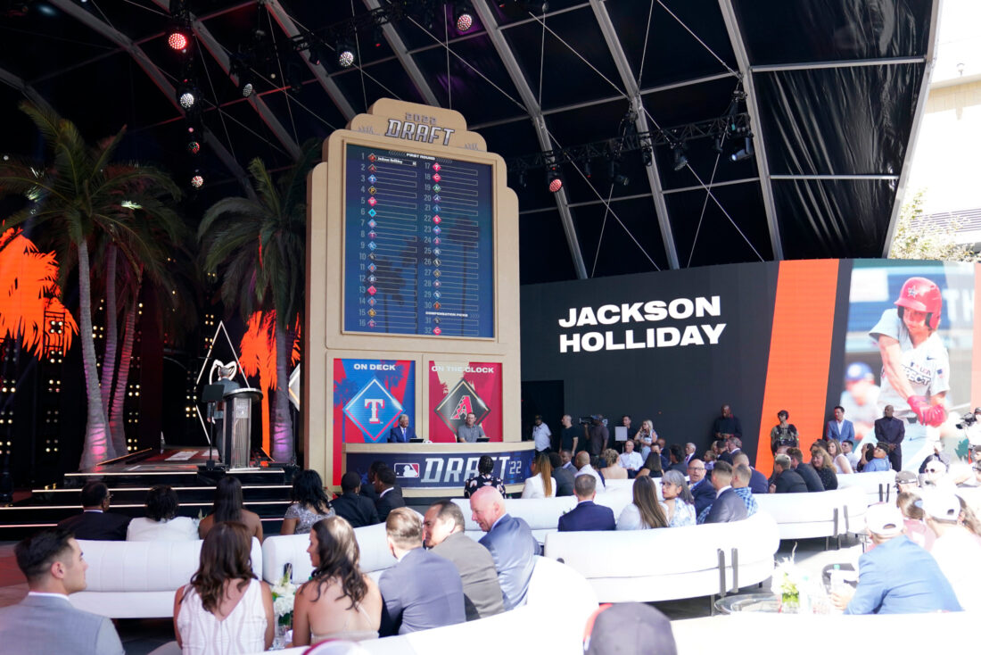 AP photo Jackson Holliday is announced as the first pick of the 2022 MLB baseball draft, by the Baltimore Orioles, Sunday in Los Angeles.