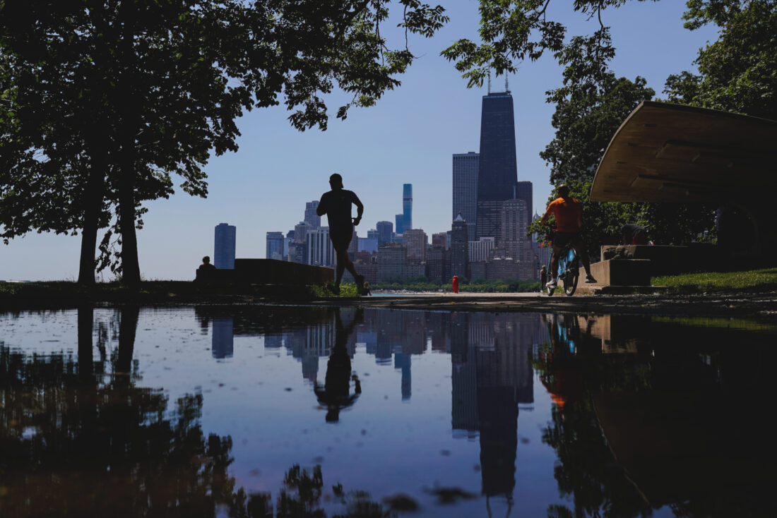 AP photo A runner jogs along a path on the shore of Lake Michigan as the downtown skyline is seen in the background, Tuesday, in Chicago.