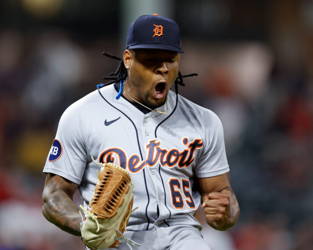 AP photo Detroit Tigers relief pitcher Gregory Soto celebrates the team’s 4-3 win against the Cleveland Guardians in a baseball game Tuesday, in Cleveland.