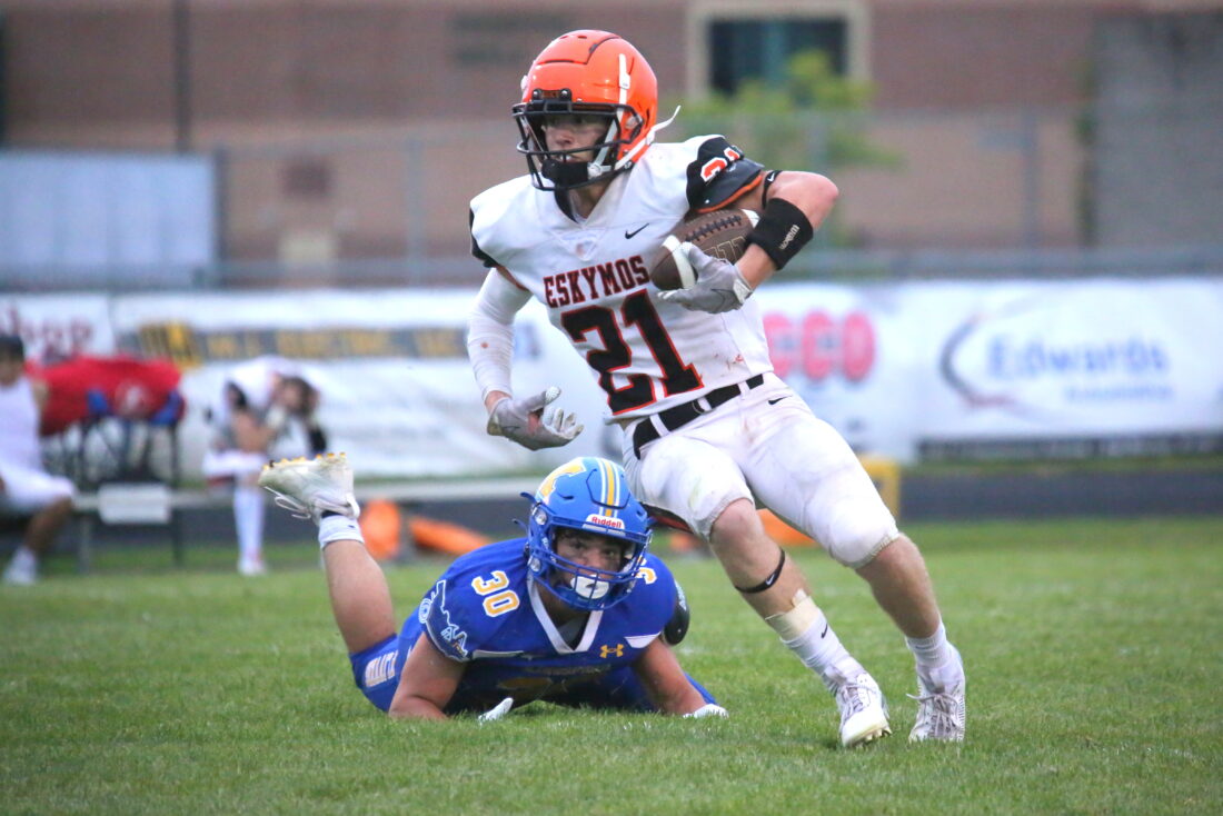 The Eskymos did move the ball into Kingsford territory three times but came away with nothing. One drive ended with a mishandled snap on a field goal attempt, another finished with a sack on fourth down and another was stopped by an interception by Kingsford senior Thomas Maynard.