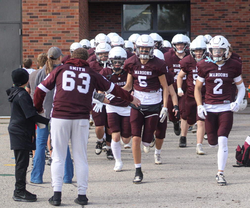 The 2024 Menominee football team makes its way to the field before a MHSAA Division 7 district semifinal game against Houghton Lake on Nov. 2, 2024 at Walton Blesch Field in Menominee. (“The Big Dog” Mitch Vosburg/Daily Press)