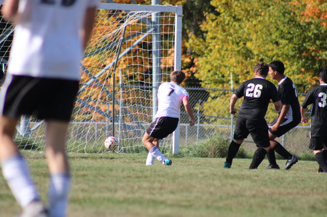 The Black Bears extended their lead to 2-0 with 23:10 to go in the first half as senior Joey Rochefort collided with the Hannahville goalie and got the ball in the net.