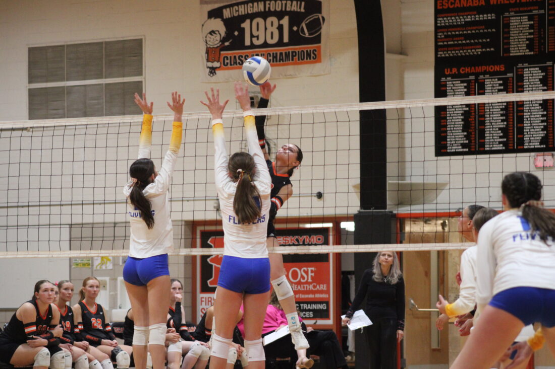 The Flivvers jumped out to an early 3-0 lead in the second set before the Eskymos answered with three straight points to tie the game. After a kill by junior Mylee Kreider gave the Flivvers a 4-3 lead. Escanaba senior Ava Stalboeger came up with back-to-back kills to put the Eskymos up 5-4. The Eskymos scored five of the next seven points to extend the lead to 10-6.