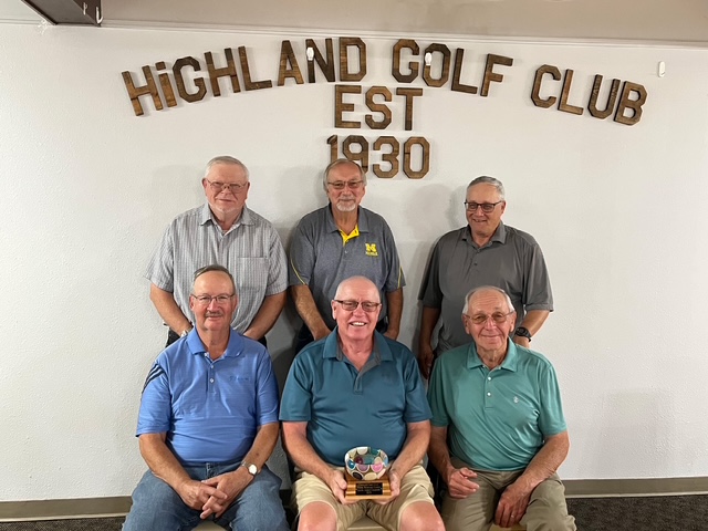 Winners of the Highland Senior Men’s League Green Jacket Tournament were recently announced at the league’s year end banquet held at the club. Front row (l to r): Medalist (low gross) Jim Kroll; Green Jacket winner (low net) Fred Breitzman and Senior medalist Paul Sabourin. Back row (l to r): Flight A winner Josh Busick; Flight B winner Dave Vallier and Flight C winner Jack Heyer.