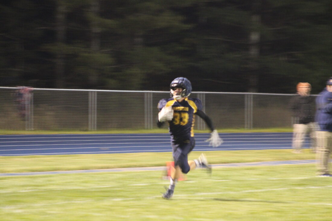 With 4:15 to go in the first half, junior Ben Knauf took the ball to the left and went 40 yards to the house extending the Broncos lead to 22-6.