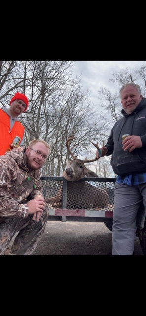 Deer hunter Chuck Fazer shot this buck opening morning at 7:30am south of Powers. Chuck seen on the right with his son Andrew in the left and Rob in the background pose for a photo with the buck which weighed in at 160 pounds. Curtosey Photo