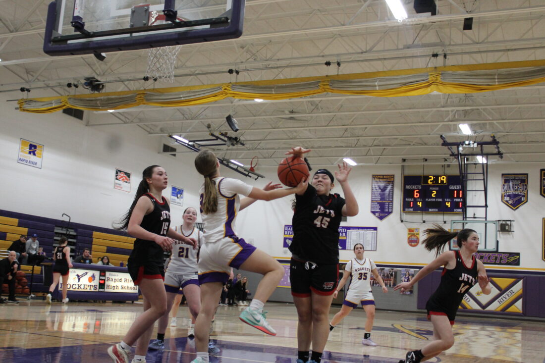 The Jets were led by Dalyn Otradovec with 13 points and the Rockets were led by Aubrey Olson with 10.