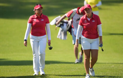 GOYANG, South Korea (AP) — The United States beat China twice in fourball matches Thursday on the first day of the LPGA's International Crown tournament while world No. 1-ranked Jeeno Thitikul remained perfect at the team event.