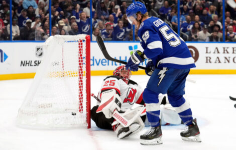 TAMPA, Fla. (AP) — Jake Guentzel scored three goals for his eighth career hat trick and the Tampa Bay Lightning beat the New Jersey Devils 5-1 on Tuesday night.