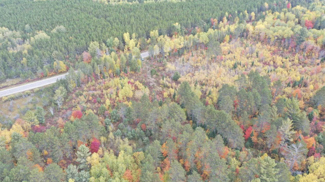 Highway E creates the border between the Upper Wisconsin River Legacy Forest, above, and the Upper Wisconsin River Bird Habitat, below. (Photo courtesy of Joe Hovel/Partners in Forestry, via WXPR/Wisconsin Public Radio)