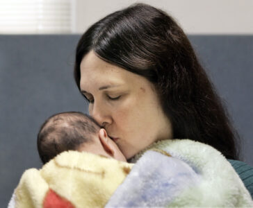 A mother kisses her infant son. (AP Photo/Nati Harnik)