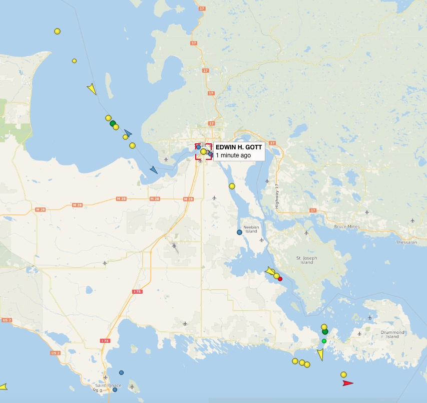 By midday Sunday, the Edwin H. Gott still had not made it through the Soo Locks.