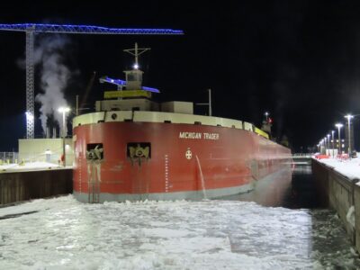 As ice froze the big ships in place, the Mackinaw — the only heavy domestic U.S. Coast Guard icebreaker — was reportedly unavailable to assist due to problems with its bow thrusters. A Thursday press release from the LCA stated that the Mackinaw was “unable to lock up to Whitefish Bay where ice conditions are in excess of two feet in spots covered by three feet of snow.”
