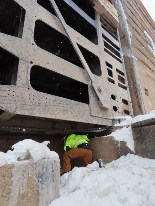 “…The lower guard gates, a set of unpowered gates at the downstream end used most years as a temporary dam, had new lifting equipment installed this winter,” she added, noting that the original, 57-year-old lifting tugs and cables had lost their structural integrity.