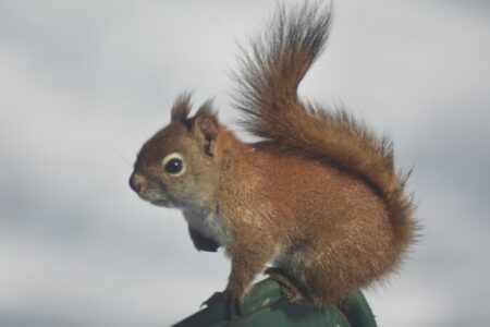 - Little red squirrel pitches woo with sad brown eyes. (Karen Wils)